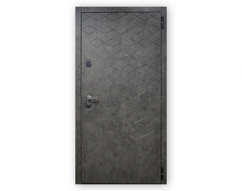 Внешняя отделка: стальной лист 1,2 мм, видимая часть облицована фрезерованным МДФ-12 мм, в ПВХ - пленке. Цвет Бетон лорд графит